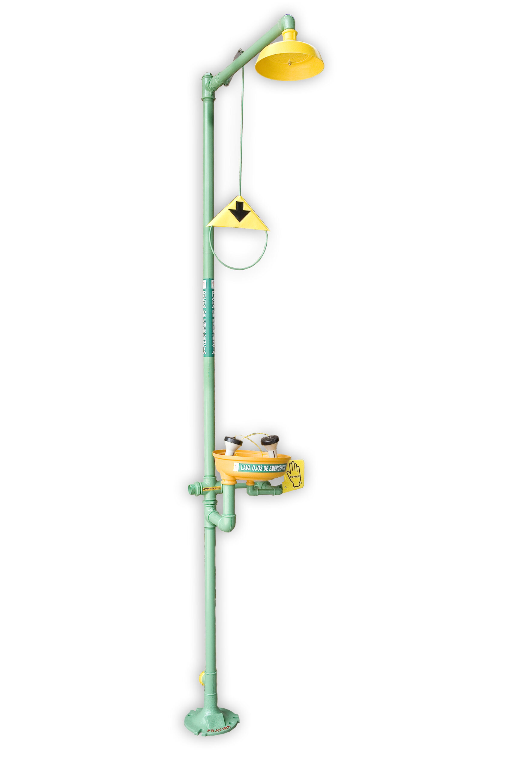 La palanca accionadora de la ducha es de 72 cm. de largo, con mango y señalizador incorporado, para la apertura de una válvula esférica de diámetro 1”.