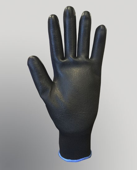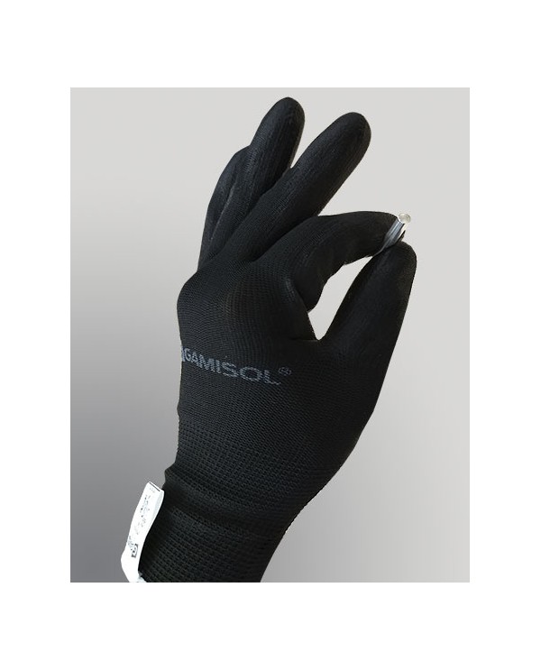 Guante sin costura, fino y de base en poliéster con baño de poliuretano.