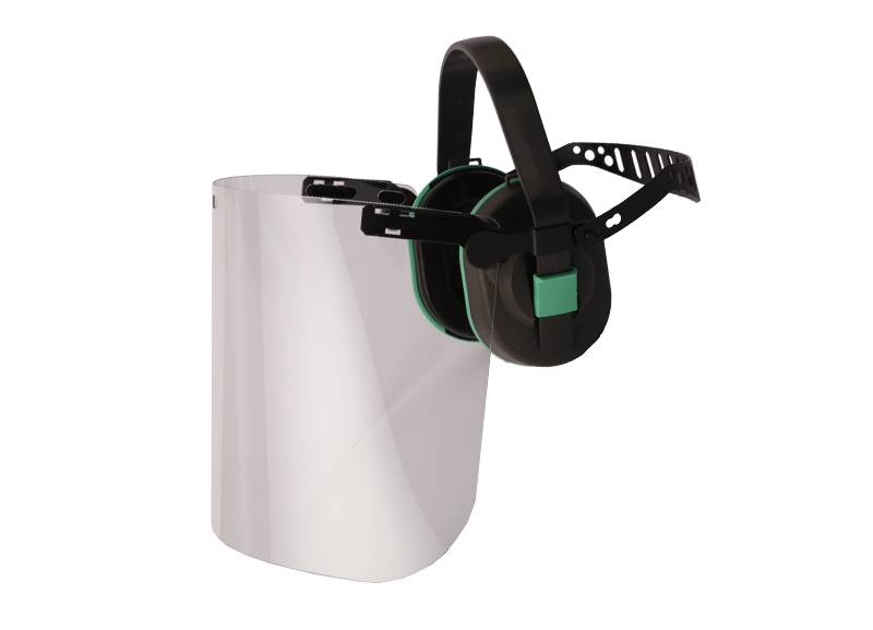 Conjunto integrado de protector facial y auditivo.